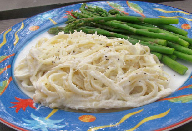 Yummy and Creamy Fettuccine Alfredo! This is very good and quick and easy. Creamy, buttery and thick! Just the way I like my Alfredo.