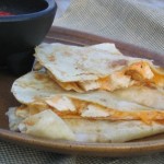 - Arrange about 1/4 cup chicken slices over tortilla on the same half covered with cheese.