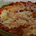 - Mix cheese/egg mixture with cooked spaghetti and place on the bottom of a shallow casserole dish.