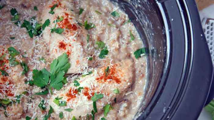 It’s probably better to leave the bones in, as this chicken will be meltingly tender and falling off the bone anyway! And if you prefer white meat, this crock pot chicken and rice can be just as delicious with skinless chicken breasts.