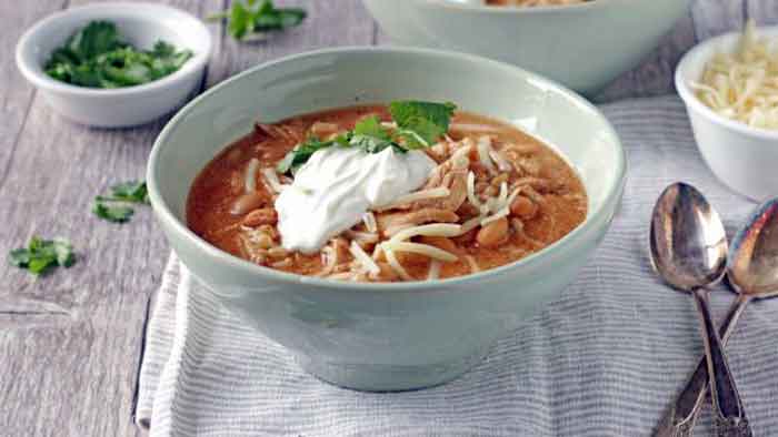 Nothing smells better than crockpot chicken chili simmering in the kitchen. With this recipe, all you do is a little prep, then stand back and let the crockpot do all the cooking.