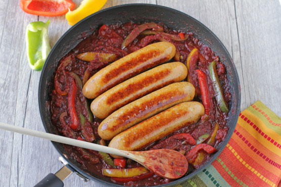2. Saute the peppers and onions in a little bit of oil. Add the remaining ingredients and simmer 5-10 minutes, until the sauce thickens.
