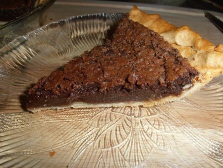 It’s really simple, especially with a pre-made pie crust. You can whip one up in about 10 minutes or so. But your chocolate craving has to wait for almost an hour cooking time!