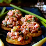 Smoked Ham Salad on Potato Coins is delicious and different. The potato coins make a fabulous base for the salad. They are so different from the usual, expected crackers or bread.