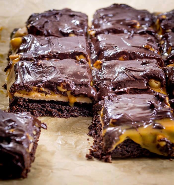 - Leave to set for 30 minutes at room temperature or in the fridge, and then cut the snickers brownies into squares using a sharp knife.