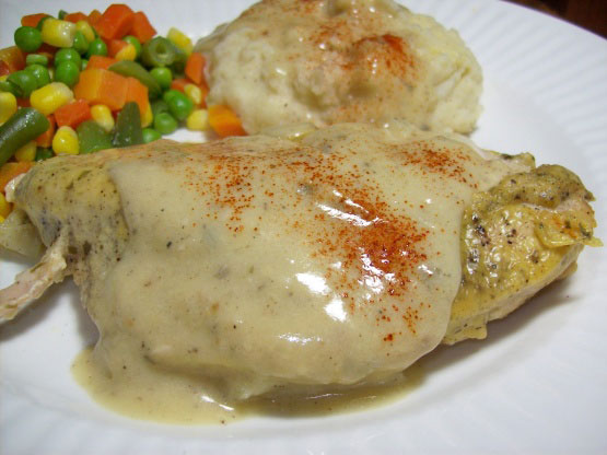 This is so easy, and so good. No browning, just put the chicken in and pour the sauce on, and bake!! The tarragon makes it an elegant entree.